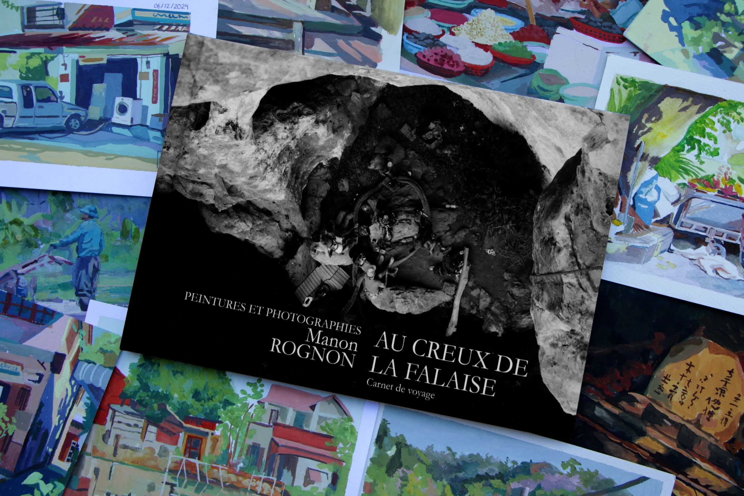 C’est un récit écrit au creux de la falaise, entre contemplation, sensations et rencontres. Ce sont des notes transformées en texte, des peintures, des photos pour raviver la moiteur de l’Asie et la rugosité de la roche.