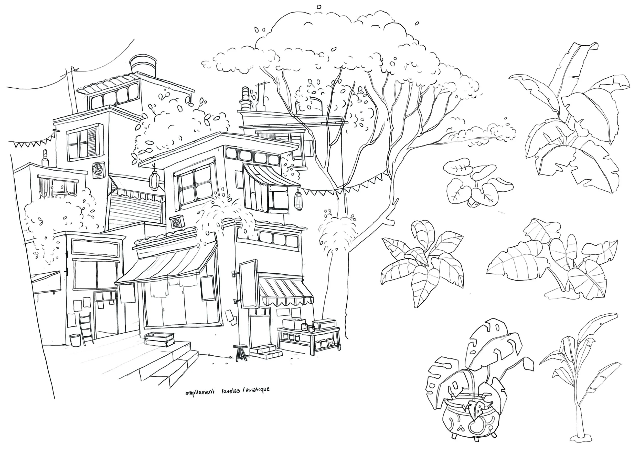 The main challenge in this shot was managing parallax, especially during the preparatory painting work. I first created a sketch, then divided it into several layers. Each layer was painted separately in acrylic before being assembled in Photoshop.